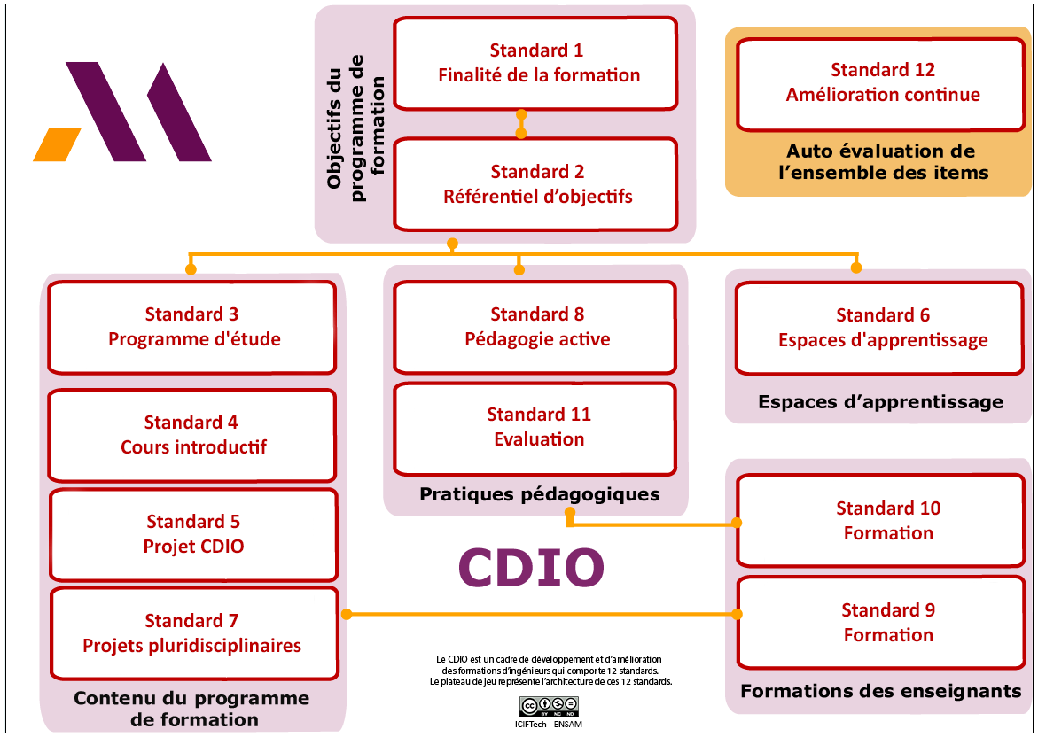 L’initiative CDIO est adoptée par 205 établissements à l'échelle mondiale, Arts et Métiers y est membre depuis 2020. Cette initiative s'articule autour de 12 standards qui forment un cadre de développement et d'amélioration continue de la formation d'ingénieur. Pour en savoir plus sur ces standards, rendez-vous sur le site du CDIO