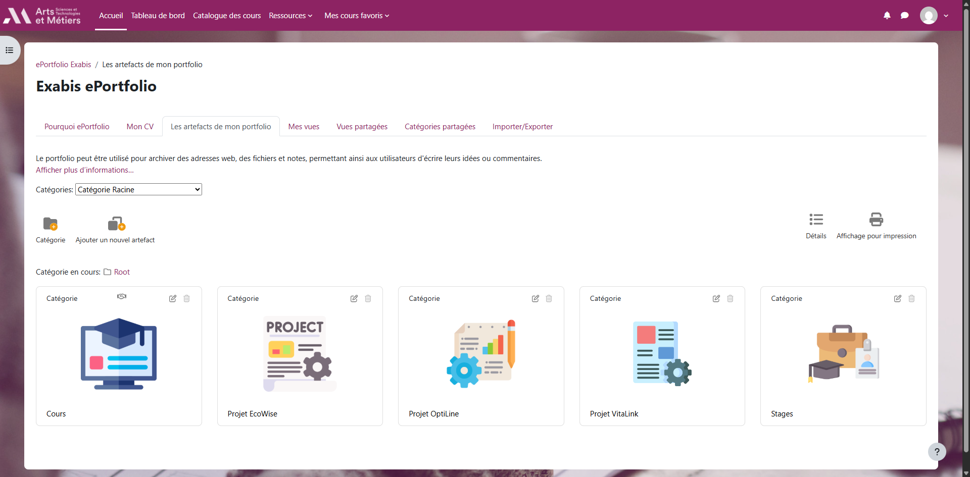 - Le déploiement des plugins Exabis Competencies et Portfolio, intégré dans notre plate-forme pédagogique Moodle.